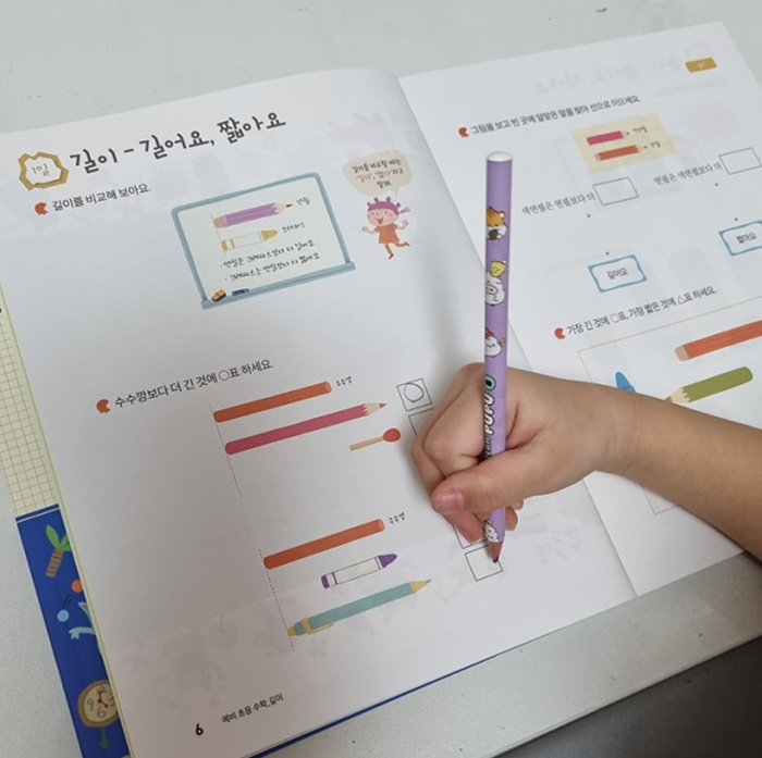 | 교재소개 | 예비 초등 수학 길이와 화폐는 길이를 재고, 물건값을 계산하는 방법만 다루는 것이 아닙니다. 예비 초등생들이 수학에 대한 흥미와 자신감을 갖기 위해 초등수학의 기초 단원 대비와 실생활 연관 문항, 문장제, 다양한 형태의 문항으로 구성하였고, 귀여운 캐릭터와 자연스러운 색감을 사용한 교재입니다. 교재 뒷쪽에 부록으로 직접 활용할 수 있도록 뜯어서 사용하는 자, 길이 비교 막대, 동전, 지폐 등의 교구재와 붙임딱지를 넉넉한 양으로 구성하였습니다. |